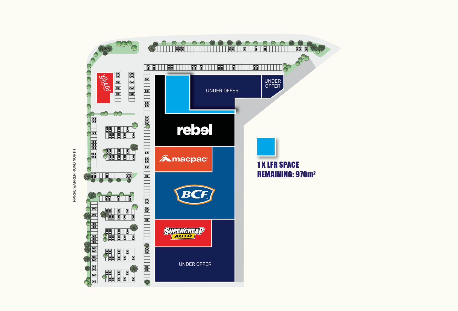 The Centre benefits from its proximity to Westfield Fountain Gate Super Centre in a tightly-held precinct with 0% vacancy for LFR. Located in the heart of Narre Warren's retail, entertainment and commercial precinct, it offers incoming retailers unrivaled visibility and access to Melbourne's fastest growing suburbs.